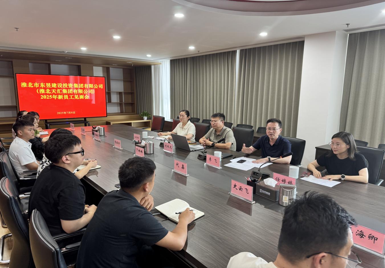 09 07月2025 了解詳情 淮北市東昱建設投資集團有限公司召開2025年新員工見面會 7月8日下午,淮北市東昱建設投資集團有限公司舉行2025年新員工見面會,集團公司董事長李飛、總經(jīng)理任婷婷、董事會秘書劉秋光出席會議,14名新入職員工參加見面會。